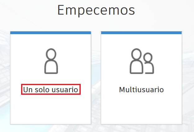 Lo habitual será que nos aparezca la siguiente ventana, debemos seleccionar "Un solo usuario"
