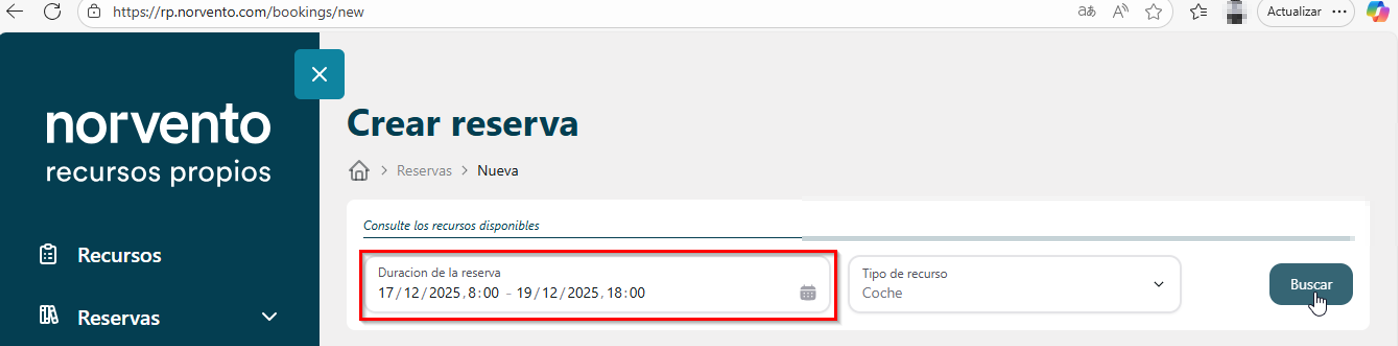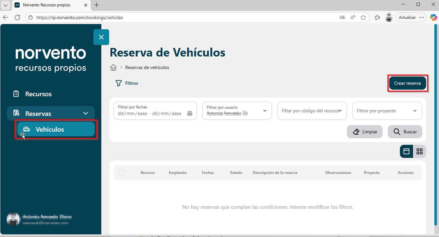 Una vez se ha creado la reserva, los usuarios podrán cancelarla o modificarla solo antes de la fecha de inicio de la reserva. Una vez cumplida esa fecha, cualquier cambio deberán solicitarlo a los gestores (vehiculos@norvento.com).